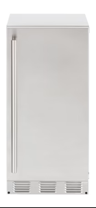 Enjoy outdoor entertaining with restaurant-quality ice right in your own backyard. Ideal for your patio, pool area or bar, the Sapphire Outdoor Clear Ice Machine eliminates the need to make trips back inside for more ice. This outdoor ice maker produces up to 63 pounds of clear gourmet ice cubes daily and the storage bin stores up to 25 pounds of ice. It includes an ice scoop for easy ice retrieval and a convenient storage hook. With its durable stainless-steel exterior and our signature Sapphire blue interior, this ice maker will complement any outdoor space. This stainless model includes a 26″ long, 1″ diameter stainless steel handle with faceted standoffs. The ice machine maker has articulating, concealed self-closing hinges, a reversible door and a built-in door stop. The multifunction capacitive touch electronic control panel is easy to use. This stainless-steel ice machine features auto shut-off when the ice bin is full and an alert notification when it’s time to initiate the easy cleaning process. To fit your lifestyle, the unit’s quiet mode feature lets you suspend ice-making production during specific times of the day. Full LED theater lighting lets you clearly see what is inside. The unit has 4 leveling legs, a factory installed drain pump and a fixed louvered stainless steel grill. Installation requires a customer-supplied water line and includes a 10 ft factory-installed drain line. Enjoy cold drinks with gourmet ice cubes any time you want with the Sapphire Outdoor Clear Ice Machine.